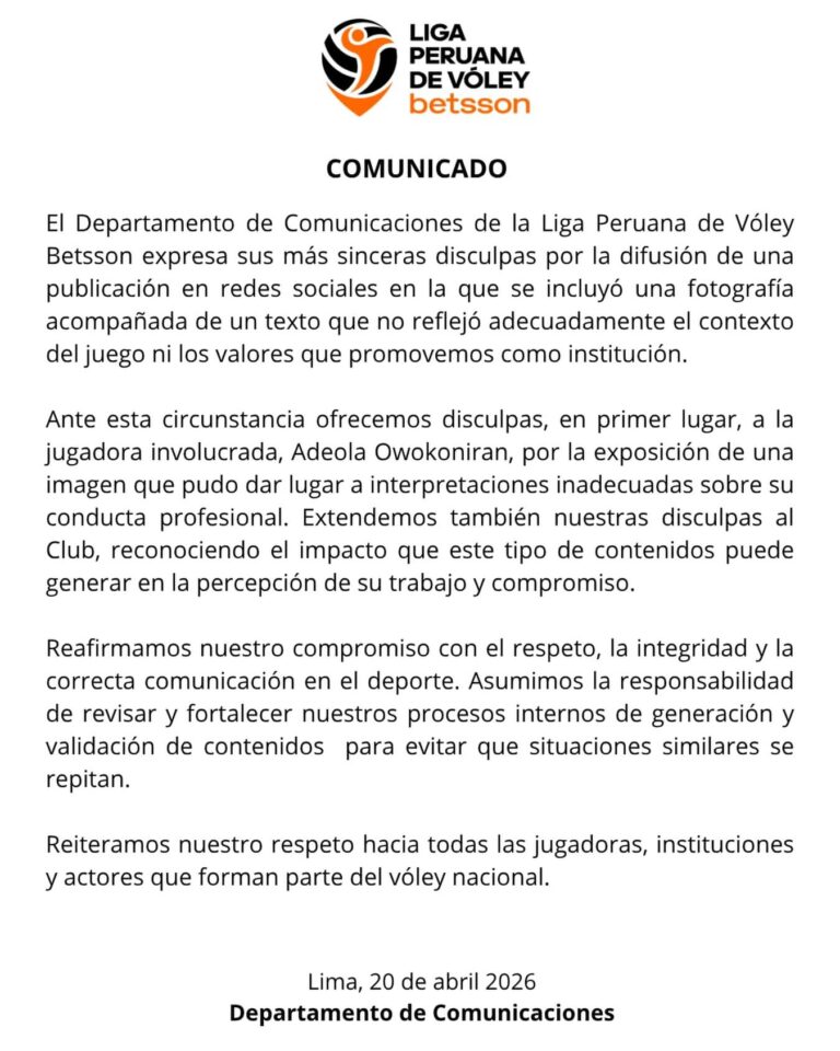 La Liga Peruana de Vóley pidió disculpas a Adeola Owokoniran tras una polémica publicación en redes sociales.